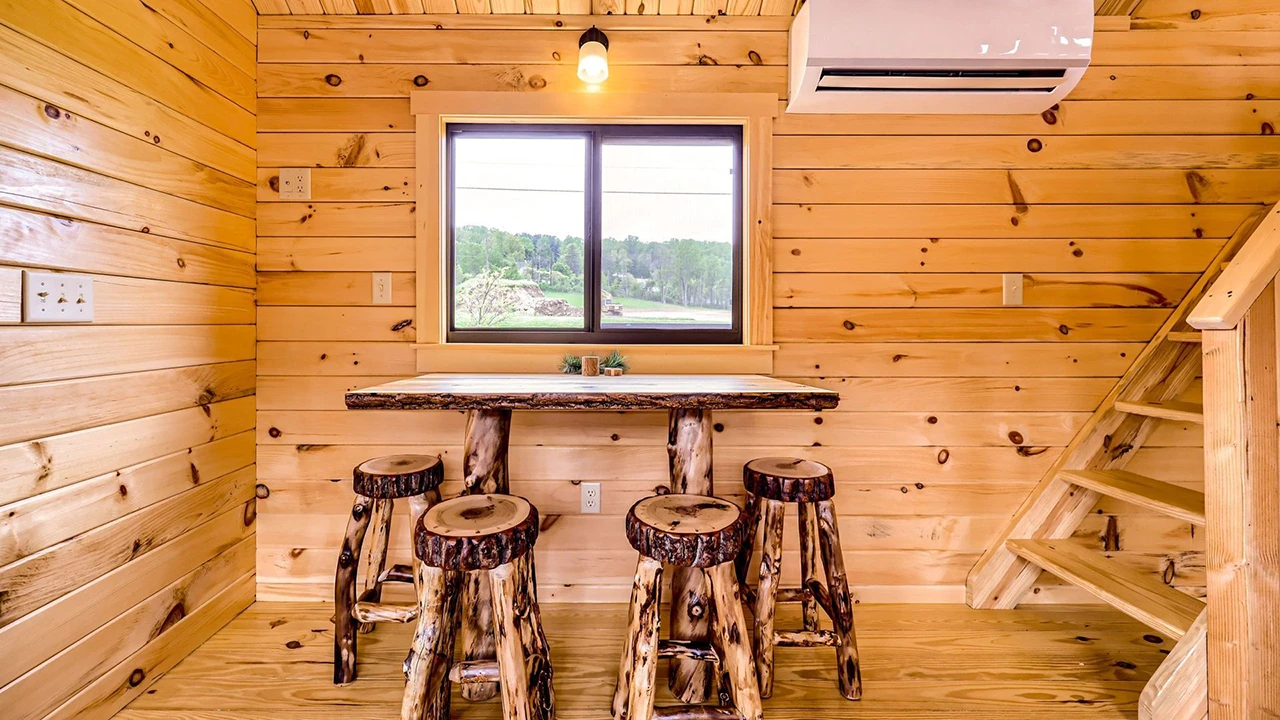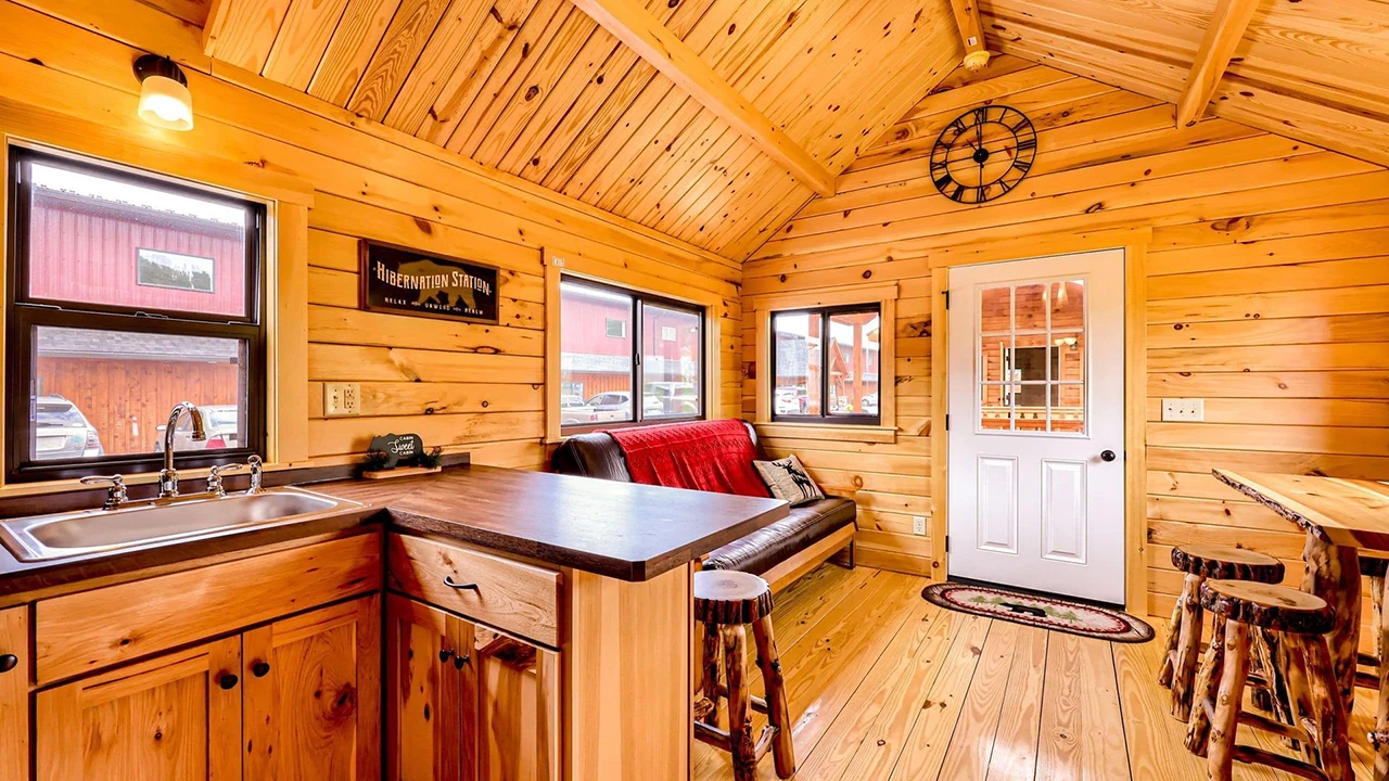 The full bathroom with shower keeps things refreshing after a big day of exploring, and the small kitchen stocked with plates, cups, silverware, a microwave, and a coffee maker means you have everything you need to feel right at home. Catch up on your favorite shows on the Smart TV and stay perfectly comfortable year round with both heating and air conditioning included. Please note that this is a non-smoking cabin and pets are not permitted.